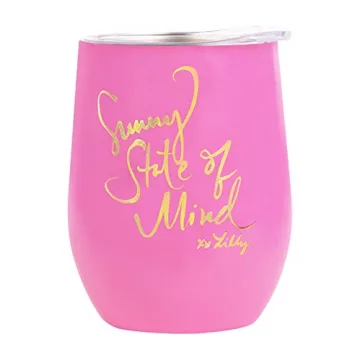Show moreElevate your hydration game with the Lilly Pulitzer 12 Oz Insulated Tumbler with Lid. This exquisite travel wine glass is crafted from high-quality stainless steel, featuring a vibrant pink exterior adorned with the cheerful inscription, "Sunny State of Mind". Engineered for optimal performance, this tumbler incorporates double wall insulation, ensuring that both your hot and cold beverages maintain their ideal temperatures. Whether you're sipping coffee on a workday morning or enjoying chilled wine at an outdoor gathering, this tumbler promises to keep your drinks at the perfect temperature while making a fashionable statement.
