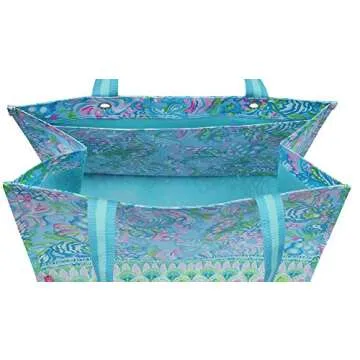 Lilly Pulitzer Blue/Green XL Market Shopper Bag, Oversize Reusable Grocery Tote with Comfortable Shoulder Straps, Aqua La Vista