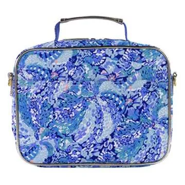 Stylish Lilly Pulitzer Blue Thermal Insulated Lunch Box for Women with Shoulder Strap