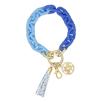Lilly Pulitzer Chain Link Keychain Bracelet - Blue Wristlet with Tassel, Stylish Key Ring for Women