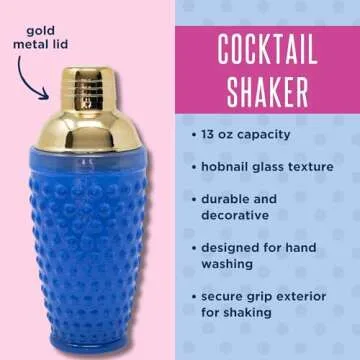 - Elegant Design: The hobnail texture and gold metal lid combine practicality with style, ensuring your drinks are mixed and served with flair.
