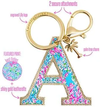 Lilly Pulitzer Leatherette Initial Keychain, Letter Bag Charm for Women, Best Fishes (A)