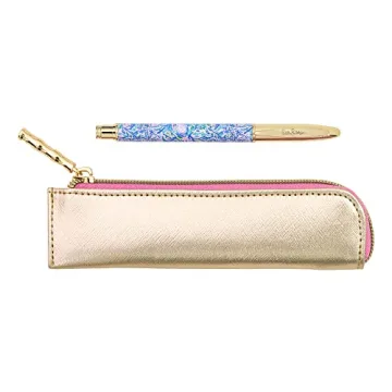 Show moreMeet the Lilly Pulitzer Metal Pen and Zipper Pouch Set, a delightful combination of style and functionality designed for the modern writer and organizer. This luxurious set features a sleek metal ballpoint pen that writes smoothly with rich black ink, allowing for precise notes, sketches, or creative writings. The pen is adorned with the iconic Lilly logo engraved on its cap, and its practical clip ensures quick access by easily attaching to your planner or notebook. Not only is this pen a joy to use, but it's also refillable with standard ink refills, keeping your creative flow uninterrupted.