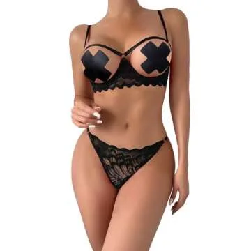 Lilosy Petite Women's Sexy Underwire Floral Lace Sheer Lingerie Set See Through Bra and Panty 2 Piece Black XXX-Small