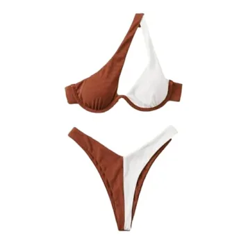 Show moreIntroducing the Lilosy Sexy Underwire Push Up Ribbed Color Block Cutout One Shoulder High Cut Leg Thong Brazilian Bikini Swimsuit Set! This exquisite swimsuit is designed for women who crave both style and comfort while making a splash this summer. Crafted from high stretch fabric, this bikini hugs your curves in all the right places, providing a perfect fit no matter your size. The removable chest pads give you the flexibility to customize your support, making this outfit as practical as it is sexy.