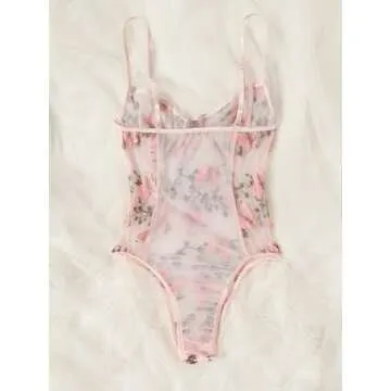 Show more Introducing a captivating and alluring lingerie piece that is bound to elevate her confidence and charm. Crafted with care, this exquisite garment features a beautiful mesh fabric with slight stretch for a perfectly fitted feel. The attractive peachy-pink color is accented with stunning gold floral embroidery and delightful 3D butterflies, adding a touch of playfulness and femininity. Every detail of this piece has been designed to enhance her natural beauty, making it a perfect gift for special occasions. Its lace-up sides provide customizable fit options, ensuring comfort and style at the same time.