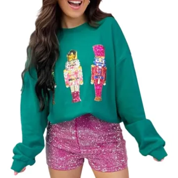 LILTWIST Christmas Sweatshirts for Women Sequin Holiday Nutcracker Long Sleeve Shirts Ugly Christmas Sparkly Graphic Sweater