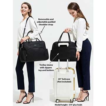 Lily & Drew Carry On Weekender Overnight Travel Shoulder Bag for 15.6 Inch Laptop Computers for Women (Black V2)