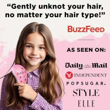 Lily England Detangler Brush for Curly Hair, Thick, Straight & Natural Hair - Trendy Gift for Teens, Kids & Toddlers with Stickers - Hairbrush for Wet & Dry Hair, Pink