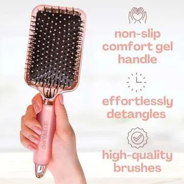 The *easy-to-hold gel handle* provides comfort and grip, allowing you to style your hair seamlessly, whether you’re blow-drying or simply detangling. Customers rave about its ability to work beautifully on hair extensions, making it a favorite among professionals and beginners alike. This paddle brush promises not just to detangle, but also to prevent hair breakage, ensuring that your hair remains healthy and vibrant.