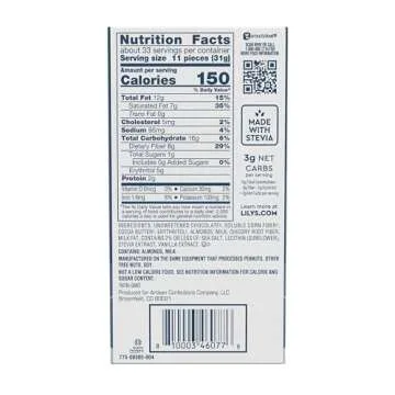 In comparison to conventional chocolate bars, LILY'S Salted Almond Milk Chocolate Style Bars stand out with their rich taste and lower carb content. Not only do they satisfy your sweet cravings, but they also align perfectly with health-conscious diets. Embrace the simplicity of enjoying a chocolate that is indulgent yet guilt-free!
