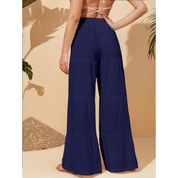 LilyCoco Women's Wide Leg Palazzo Pants High Waisted Ruffle Flowy Trousers Baggy Elastic Bell Bottom Navy Small
