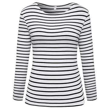 LilyCoco Womens Striped Long Sleeve Shirt Boat Neck Tops Breton Loose Fit Tshirt Black White Large