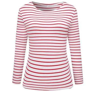 Show moreIntroducing the LilyCoco Women's Striped Long Sleeve Shirt – a perfect blend of style and comfort designed for the modern woman! Crafted from a luxurious mix of 95% Cotton and 5% Elastane, this shirt offers an unparalleled softness and breathability that you'll love to wear, making it an essential addition to your wardrobe. The striking red and white Breton stripes will elevate your casual look, while the boat neck design adds a touch of elegance, ensuring you look chic for any occasion. Whether paired with denim or skirts, this loose-fit t-shirt maintains durability and flexibility, making it perfect for all-day wear. With its lightweight fabric, you can transition effortlessly through Spring, Fall, and Winter, ensuring you stay stylish even in fluctuating weather conditions.