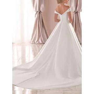 Lilyla Satin Wedding Dress Long Off The Shoulder Satin Bridal Gowns with Pockets Ivory US0