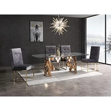Transform your dining experience with the exquisite Limari Home Carine Collection Modern Style Glass Rectangular Dining Table. This stunning piece features a luxurious 15mm clear tempered glass top that radiates elegance, complemented beautifully by a chic rose gold stainless steel base. Its rectangular design with gracefully rounded edges not only makes it a striking centerpiece for your dining area, but also promotes a safe and inviting atmosphere, accommodating...