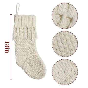 LimBridge Christmas Stockings Cable Knit, 3 Pack 18 inches White Large Size Knitted Stockings, Rustic Christmas Ornaments Farmhouse Boho Style Stocking Decorations for Family Holiday Season Decor