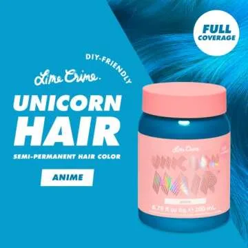 Lime Crime Unicorn Hair Dye Full Coverage, Anime (Candy Blue) - Vegan and Cruelty Free Semi-Permanent Hair Color Conditions & Moisturizes - Temporary Blue Hair Dye With Sugary Citrus Vanilla Scent