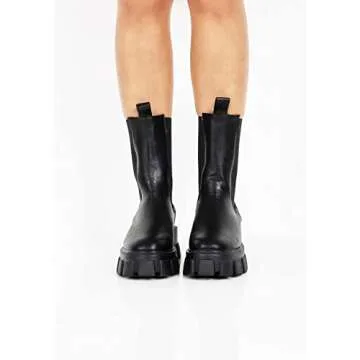 LIMON BERRY Women's Black Calf High Slip On Cleated Chunky Sole Platform Chelsea Fashion Ankle Boots (RO18) 9