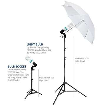 - Complete Lighting Setup: Includes all necessary bulbs, stands, and umbrellas.