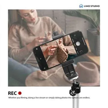 Show moreIntroducing the LimoStudio Table Top Smartphone Holder Stand, a perfect blend of versatility and functionality, designed to elevate your mobile viewing experience. Standing at a stylish 17 inches, this sturdy yet lightweight stand is crafted to provide optimal stability for your smartphones and other small electronic devices. Whether you’re video calling, streaming your favorite series, or capturing stunning photography, this adjustable stand offers the capability to position your device for the best visual output. The integrated mini ball head angle control allows for quick and smooth adjustments, ensuring you're always at the right angle.