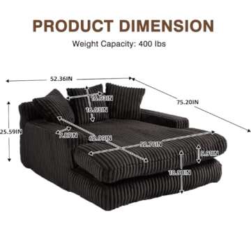 Lin-Utrend Oversized Chaise Lounge Chair, Corduroy Loveseat Floor Sofa,Comfy Short Plush Cloud Couch Bed,Modern Sleeper Chair Sofa Recliner for Living Room,Bedroom,Office (Black.)