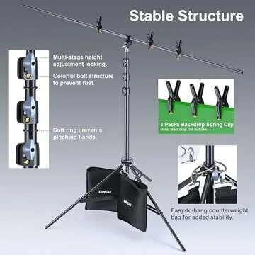 Manufactured with stability and durability in mind, this backdrop stand features a 35-inch diameter wide base and non-slip mats on the legs to ensure it remains secure during use. The use of rubber rings provides additional support, preventing any unexpected falls. Whether you are shooting a wedding, family gathering, or even engaging in live streaming, this backdrop stand guarantees a sturdy frame for your backgrounds.