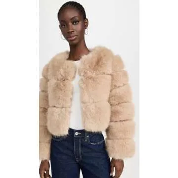 Line & Dot Women's Liana Faux Fur Jacket, Latte, Tan, S