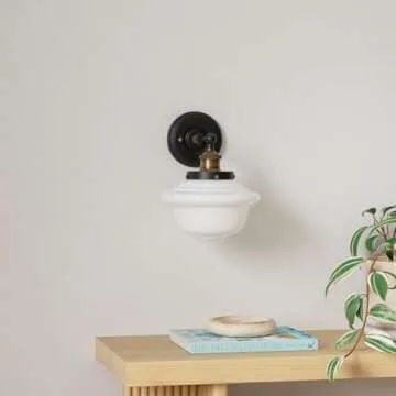 Linea 1 Light Bathroom Vanity Light - Lavagna Schoolhouse Light Fixture - Black with Milk Glass Shade Wall Sconce, UL Listed