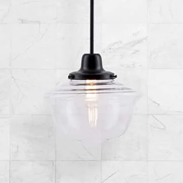 Linea di Liara Large Glass Pendant Lighting for Kitchen Island Lavagna Farmhouse Kitchen Lighting Vintage Schoolhouse Globe Matte Black Pendant Light Fixture, Clear Pendant Lamp Shade, Bulb Included