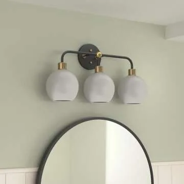 Show moreIntroducing the exquisite Linea di Liara Lukasa Modern Bathroom Vanity Light Fixtures, a stunning blend of sophistication and utility. Designed with a chic matte black and gold finish, this 3-light vanity fixture not only transforms your bathroom but elevates your daily routine with its high-quality illumination. The sleek, minimalist design perfectly complements any decor style, making it ideal for contemporary spaces. Each fixture is designed with frosted glass cylinder shades that create a warm, inviting glow while providing excellent diffusion. With an easy installation process and the versatility to be mounted as an uplight or downlight, achieving your dream bathroom lighting has never been easier.