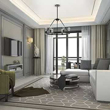 Linea di Liara Sonoro Black Chandelier Dining Room Light Fixture Small Wagon Wheel Chandelier Rustic Round Industrial Modern Farmhouse Chandeliers for Dining Room Entryway Foyer, 7 Bulbs Included