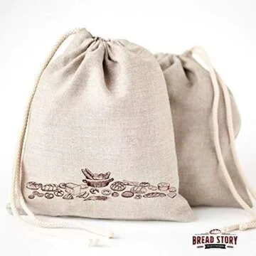 Linen Bread Bags - 2-Pack 11 x 15 inch Ideal for Homemade Bread, Unbleached, Reusable Food Storage, Housewarming, Wedding Gift, Storage for Artisan Bread - Bakery & Baguette