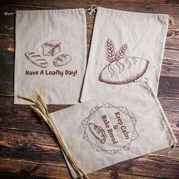 Linen Bread Bags, Bags for Homemade Breads, Pack of 3 Reusable Linen Bags for Sourdough, Natural Storage for Artisan Breads, Gift for Bread Makers, Bakers, Housewarming, Wedding Gifts