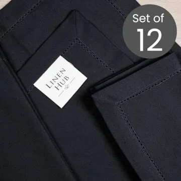 Linen Hub Hemstitch Cloth Dinner Napkins Set of 12 - 100% Cotton - 18x18 - Perfect for Any Occasion!