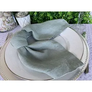 Linen Napkins – 100% French Flax – Stonewashed Pure Linen Cloth Napkins – Mitered Corners – Set of 4 (Sage Green)