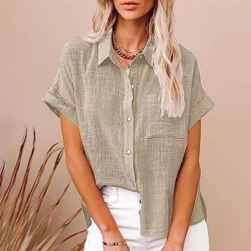 Trendy Linen Shirts for Women - Casual Summer 2025 Button Down Blouse