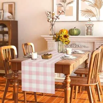 Linen Watercolor Pink White Buffalo Check Plaid Table Runner Gingham Tablecloth Farmhouse Spring Summer Easter Home Kitchen Table Decorations-13×72''(Pink and White)