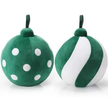 Show more Welcome the holiday spirit into your home with our Adorable Christmas Ball Pillows. These enchanting green and white striped pillows, each measuring approximately 7 inches in diameter, are the perfect festive accents to brighten any corner of your living space. Crafted with exquisitely soft fabric and filled with plush PP cotton, they not only add charm to your decor but also provide comfort and warmth.