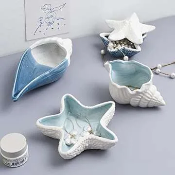 Linfye Starfish Jewelry Dish Tray Ceramic Jewelry Holder Ring Dish Trinket Tray Ceramics Tray Jewelry Dish Ocean Style Trinket Tray Dish Holder Earrings Candy Storage Holder Table Decoration Supplies