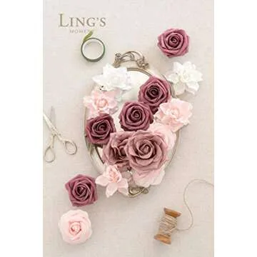 Ling's Moment Artificial Flowers Fake Roses Faux Foam Gardenia Combo for DIY Wedding Bouquets Centerpieces Arrangements Bridal Shower Party Home Decorations, Mauve & Blush, 24pcs