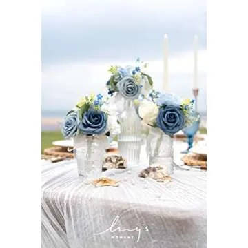 Ling's Moment Dusty Blue Wedding Table Centerpieces Mini Bridesmaid Bouquets Set of 6 Light Blue Rose Bouquets Pre-Made Floral Wedding Centerpieces for Reception Decor (Dusty Blue)
