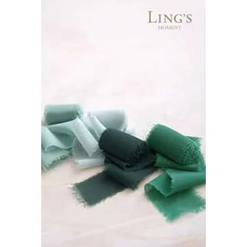 Ling's Moment Handmade Fringe Chiffon Silk-Like Ribbon Smooth Ribbon Ombre Colors Chart, Verona Green