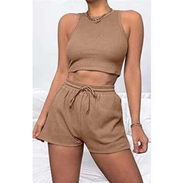 Show more Introducing the ultimate summer lounging companion: our delightful Waffle Lounge Sets for Women, designed for comfort and style throughout the sunny season. Crafted with a breathable waffle knit fabric, this versatile two-piece outfit features a charming sleeveless top with a round-neck and a relaxed-fit short with a drawstring waistband. The set not only promotes ease of movement but also embraces your shape with its soft and stretchy material, ensuring that you feel good all day long.