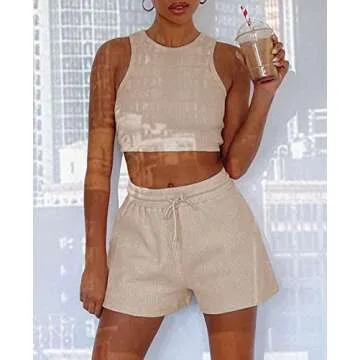 Lingswallow 2 Piece Women Lounge Sets - Sleeveless Crop Top and Shorts Waffle Lounge Set Tracksuits Sweatsuits for Women