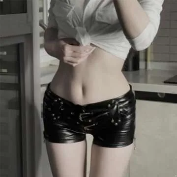 Linjinx Women's Faux Leather Low Waist Skinny Shorts Wide Straight Leg Mini Shorts for Casual Club Black Small