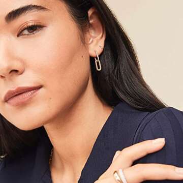 Link Chain Drop Earrings for Women Paperclip Earings With Cubic Zircon Chunky Gold Silver Dangle Jewelry