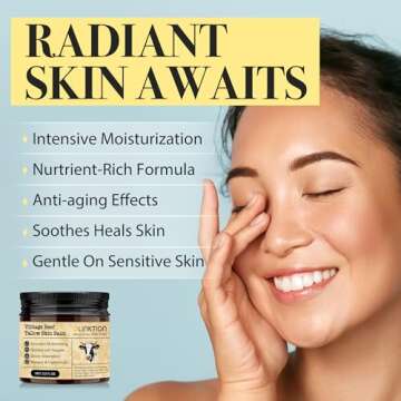 Why You Will Love This Product: Experience the joy of soft, glowing skin with the LINKTION Beef Tallow Honey Balm. This balm doesn’t just moisturize; it rejuvenates and protects, enhancing your skin's natural beauty and health. You’ll fall in love with how effortlessly it absorbs into your skin without any greasy feeling, leaving your skin feeling loved and cared for. With regular use, you’ll find that it not only improves skin texture but also fortifies it against dryness and environmental damage, paving the way for a more youthful appearance. Reimagine your skincare routine and embrace the healing benefits of wholesome ingredients today! Less