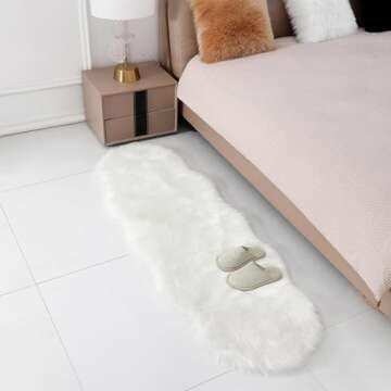 linmopm Faux Fur Rug Sheepskin Shag Fluffy Fuzzy White 2x6 ft Runner Rugs for Bedroom Bedside Bed Floor Living Room Plush High-Density Cushion Carpet Super Sofa Cover