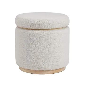 Show moreElevate your home decor with the exquisite Linon Home Décor Cream Sherpa Round Storage Ottoman. This stylish yet functional piece is expertly upholstered in soft natural Sherpa fabric, ensuring not only elegance but also exceptional comfort. Designed by the renowned Linon brand, this ottoman features an eye-catching light stained wooden base that enhances its modern aesthetic. Measuring 18" W x 18" D x 18" H, it effortlessly combines beauty with practicality, making it an ideal accent piece for any room.